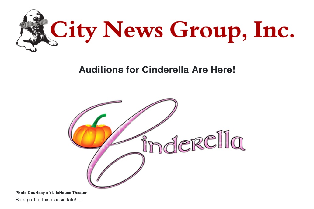 Open auditions for LifeHouse Theater’s original musical “Cinderella,” directed by Priscilla George, will be Thursday, July 11, 2019 from 6:00 PM to 9:00 PM at LifeHouse Theater, 1135 N. Church Street, Redlands.