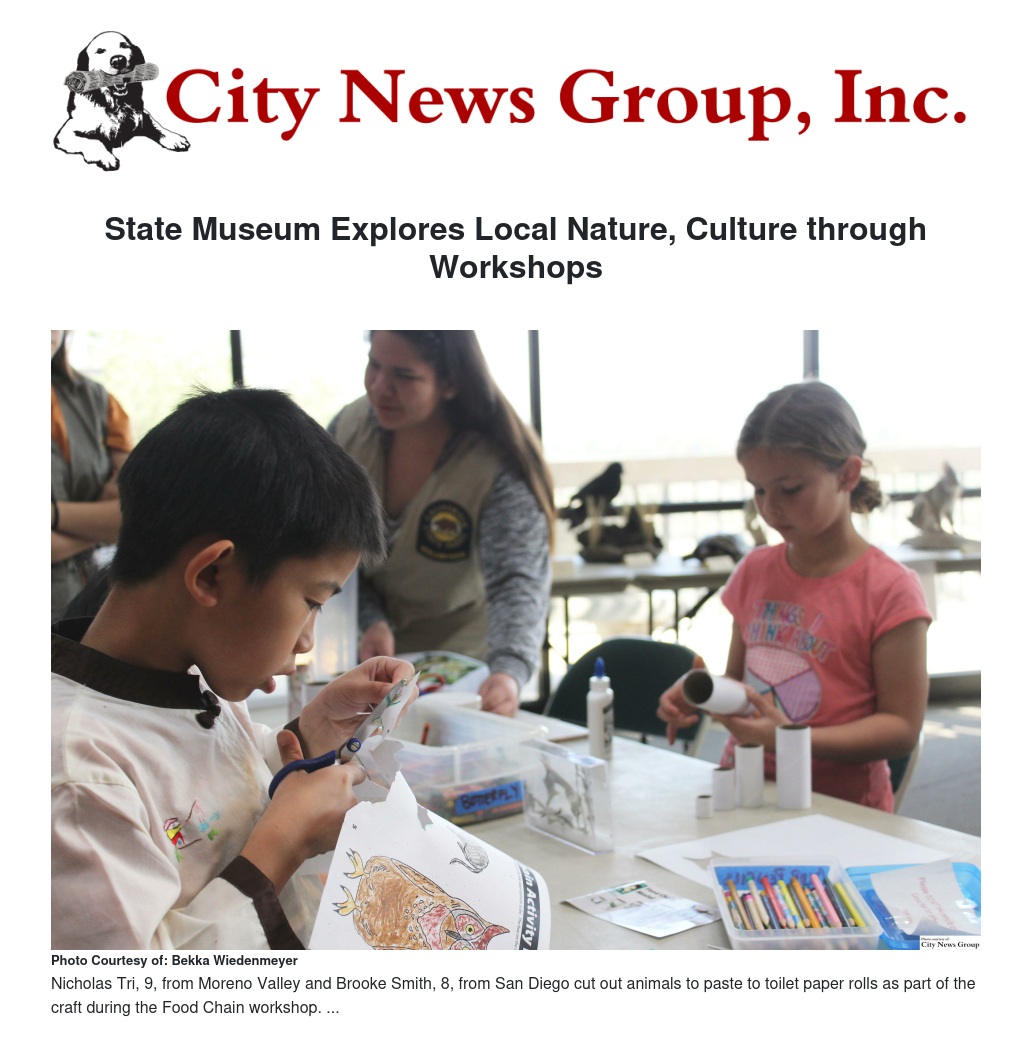 The workshops, which run from 10 a.m. to 3 p.m. on Saturday, explore a variety of educational topics that are suited for children ages 5 and up, and adults. Organized last year in May by the museum, they are now run by Kimberly Seltmann, state park interpreter at Lake Perris State Recreation Area, and Jack Boyes, long-time park volunteer at Lake Perris SRA. Members of the surrounding communities bring their families to learn more about the lifestyle of the California Native Americans and animals of the area through the various workshops offered.