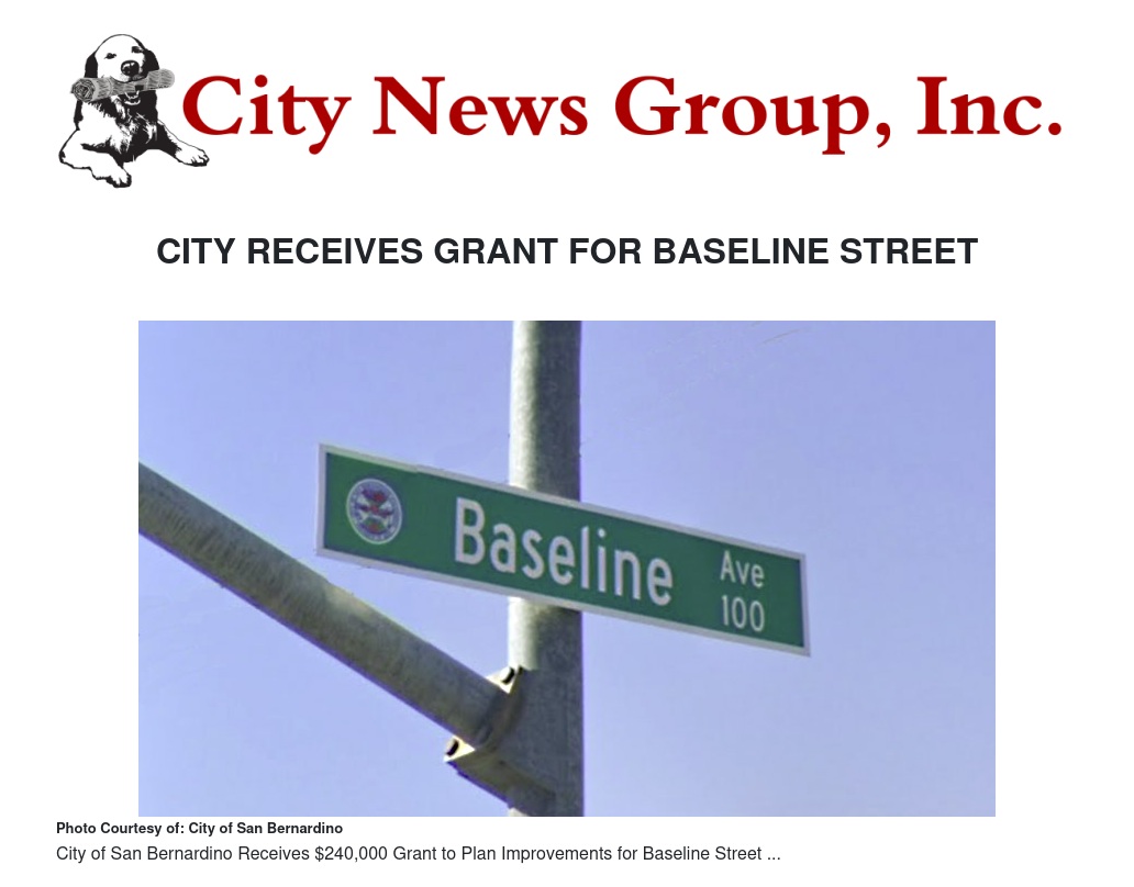 The City of San Bernardino has announced that it has received a $240,800 grant from the U.S. Department of Transportation (USDOT) to plan road improvements along Baseline Street. Upon completion of the work funded through this award, the City will be positioned to compete for project funding in future USDOT funding cycles.
