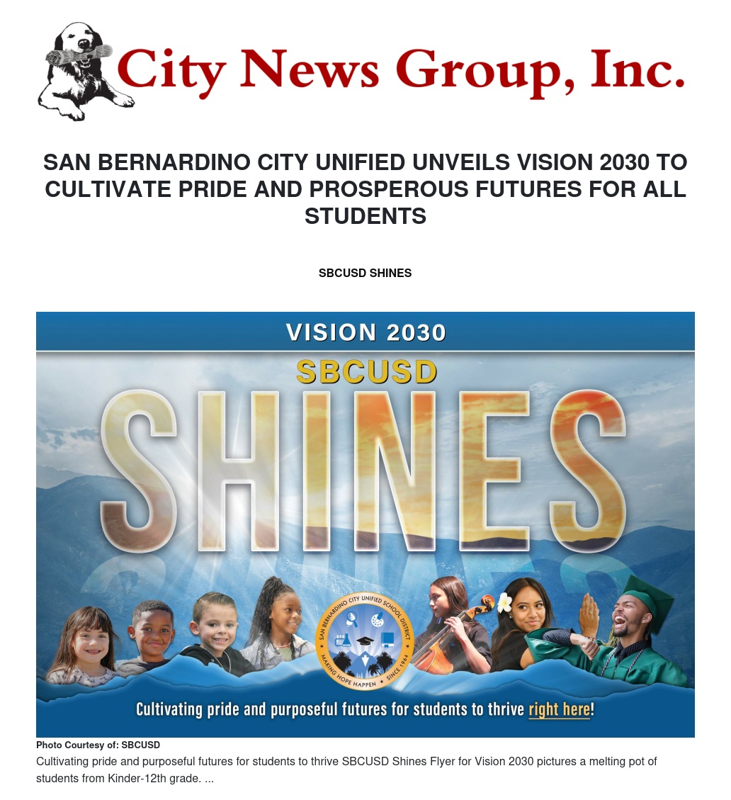 In a landmark initiative aimed at shaping the future of education in the region, the San Bernardino City Unified School District (SBCUSD) proudly unveiled Vision 2030: SBCUSD SHINES. Spearheaded by Superintendent Mauricio Arellano, this transformative vision sets a bold course for the district's mission to cultivate pride and purposeful futures for its students.