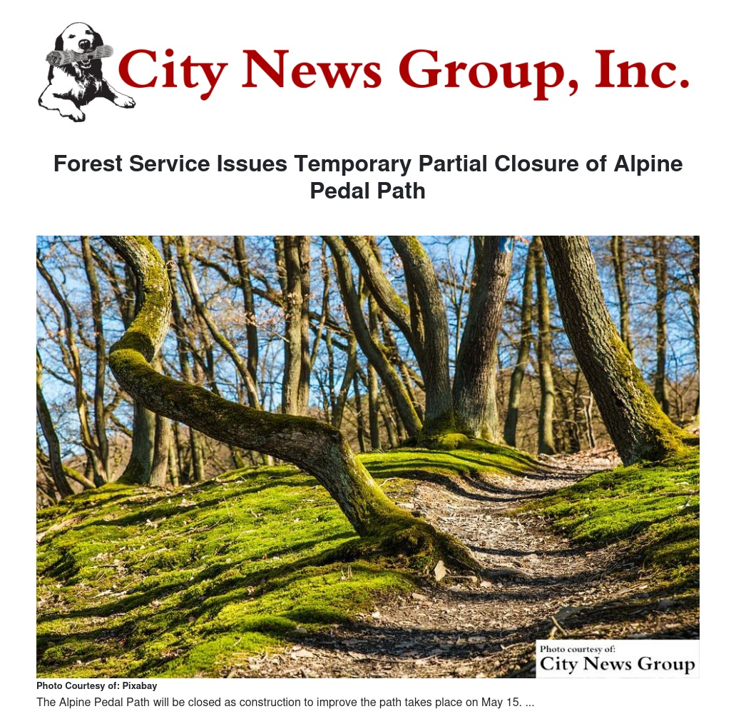 SAN BERNARDINO>> The San Bernardino National Forest has posted notice that there will be a partial closure of the Alpine Pedal Path for the construction phases of the Alpine Pedal Path Improvement Project beginning May 15 thru June 30, 2017.