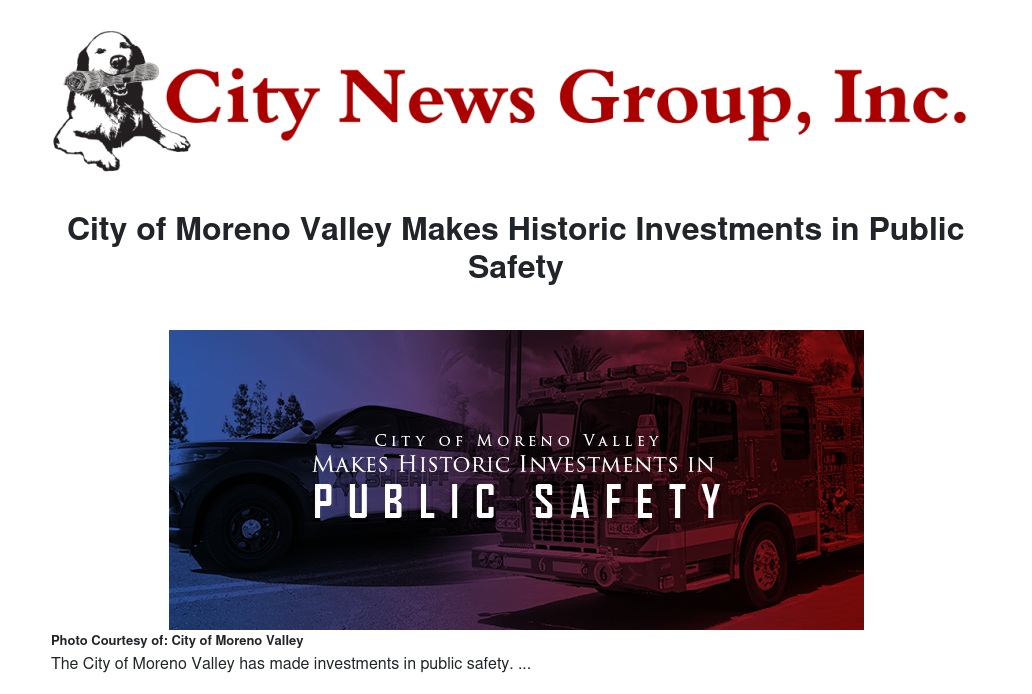 City of Moreno Valley Makes Historic Investments in Public Safety by Vivian Johnson - City News Group, Inc.