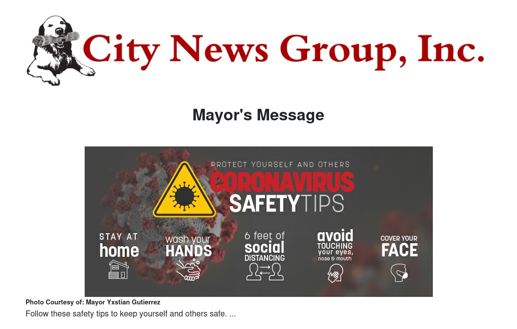 Mayor's Message by Yxstian Gutierrez - City News Group, Inc.