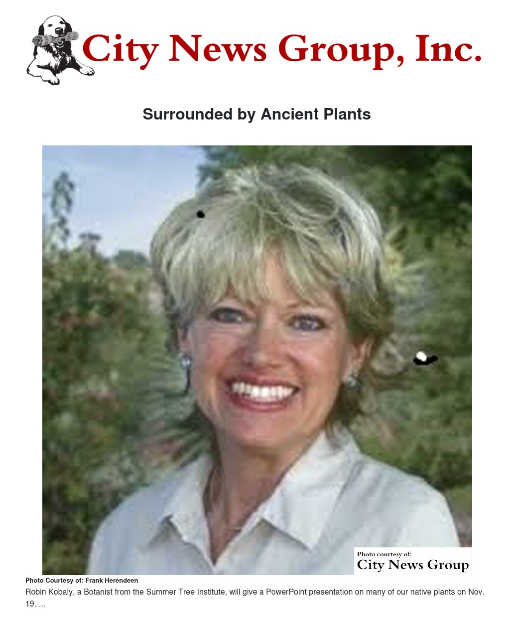 This month’s speaker of the Redlands Horticultural and Improvement Society will be Robin Kobaly, a Botanist from the Summer Tree Institute.