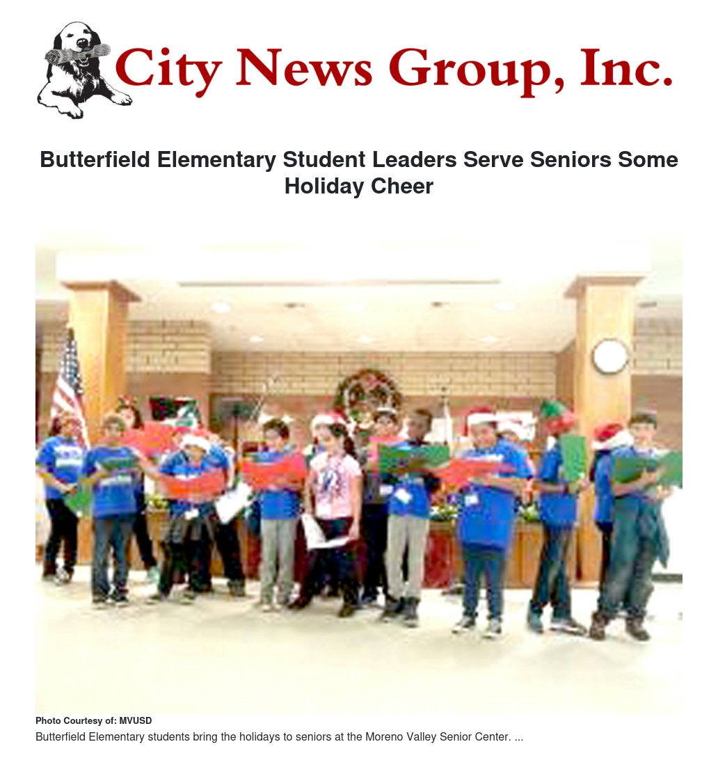 Butterfield Elementary Student Leaders Serve Seniors Some Holiday Cheer