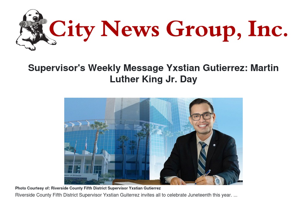 Supervisor's Weekly Message Yxstian Gutierrez: Martin Luther King Jr. Day by Yxstian Gutierrez - City News Group, Inc.