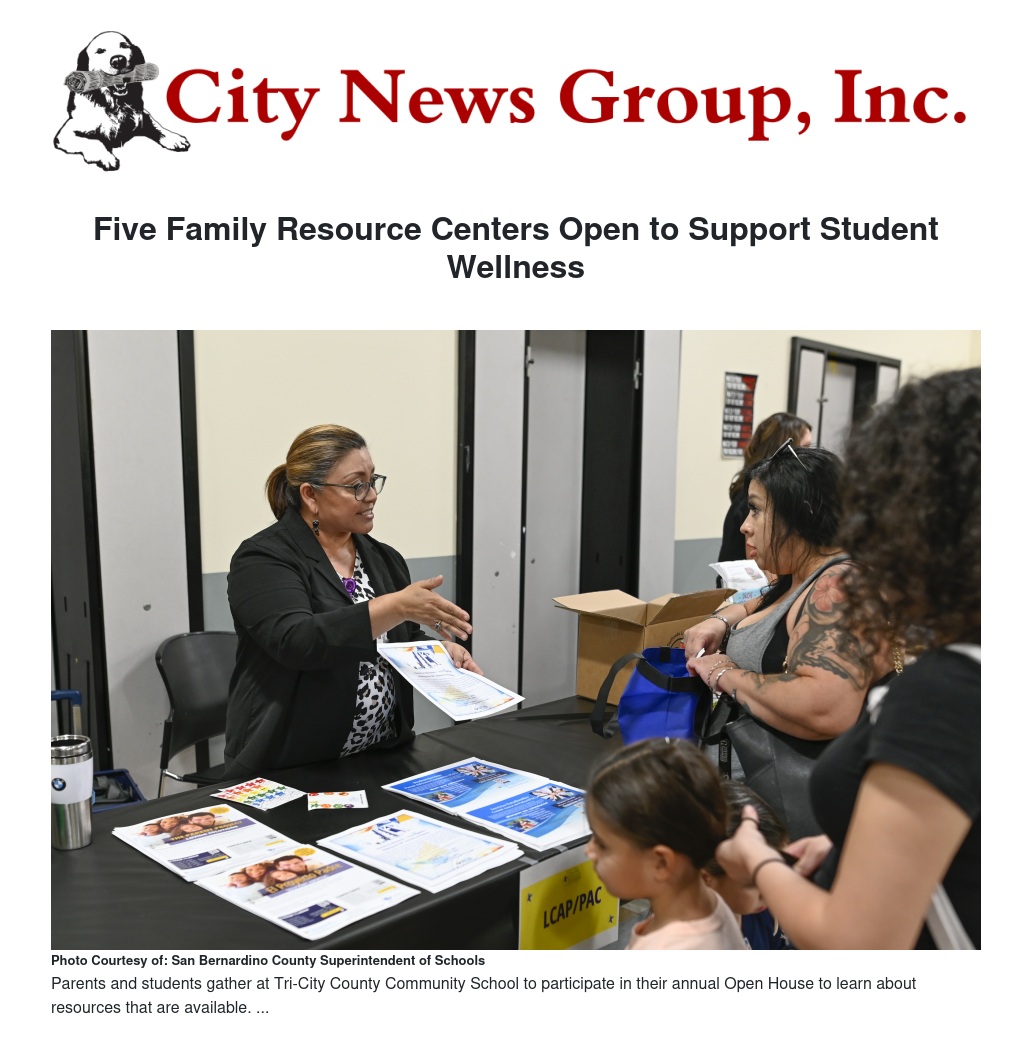 San Bernardino County Superintendent of Schools (SBCSS) has launched Family Resource Centers at five school sites.