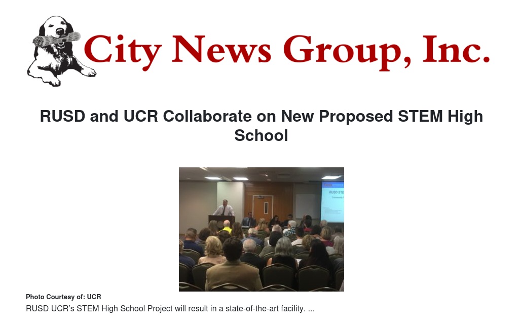 RUSD and UCR Collaborate on New Proposed STEM High School by Justin Grayson - City News Group, Inc.