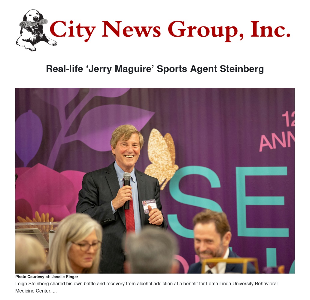 Leigh Steinberg, the sports super-agent and inspiration for the Oscar-winning film Jerry Maguire, shared his own battle and recovery from alcohol addiction while praising mental health providers and supporters at a benefit for Loma Linda University Behavioral Medicine Center.