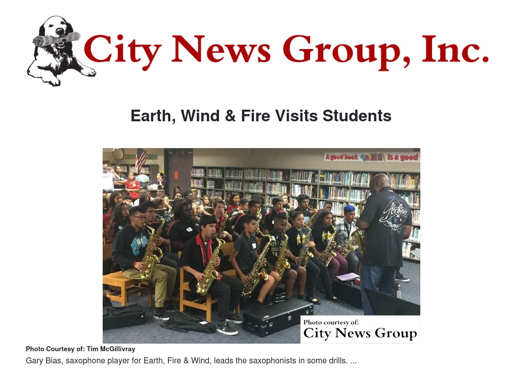 MORENO VALLEY>> The horn section from the well-known Earth, Wind & Fire band came to make a visit to the students of Landmark Middle School.
