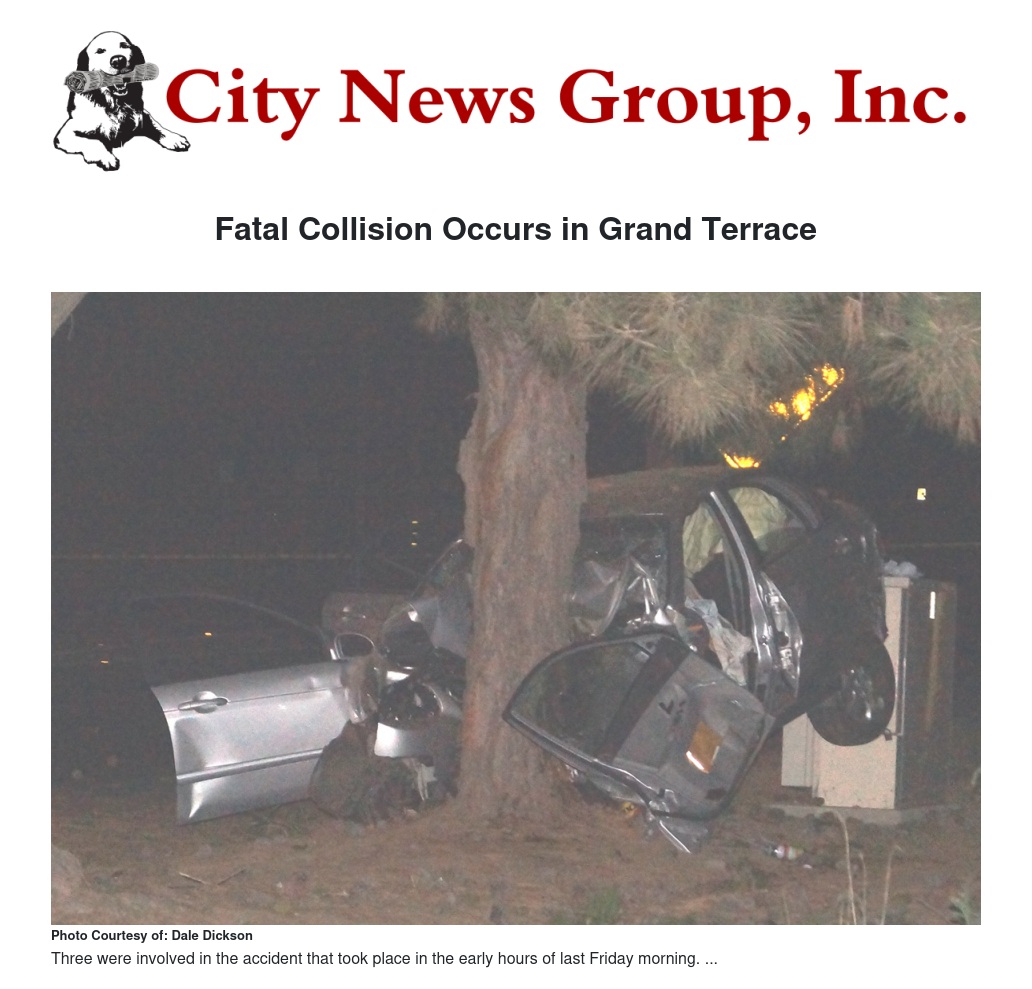 Fatal Collision Occurs in Grand Terrace
