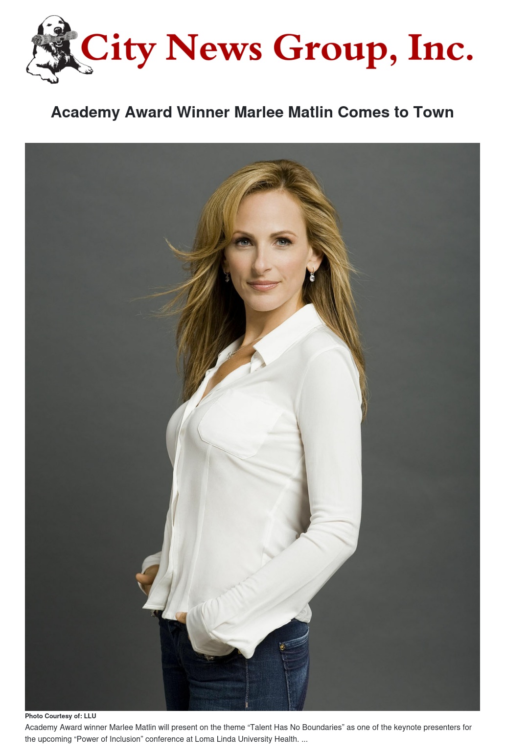 Academy Award winner Marlee Matlin will lead a number of high-powered presenters at the upcoming “Power of Inclusion” conference held at Loma Linda University Health (LLUH).