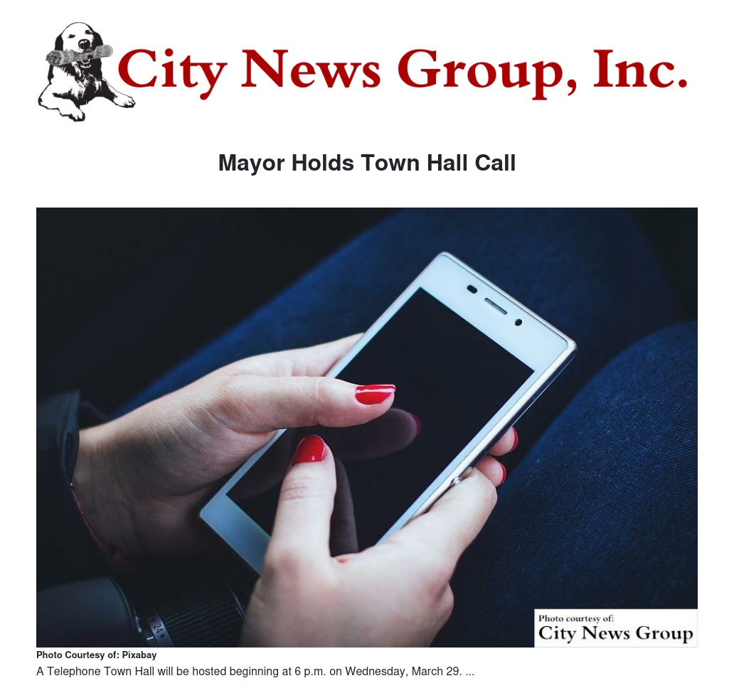 The city will call registered participants at precisely 6 p.m. on Wednesday, March 29 to connect you to the Telephone Town Hall. Residents can listen to the call for the entire meeting or just a portion.