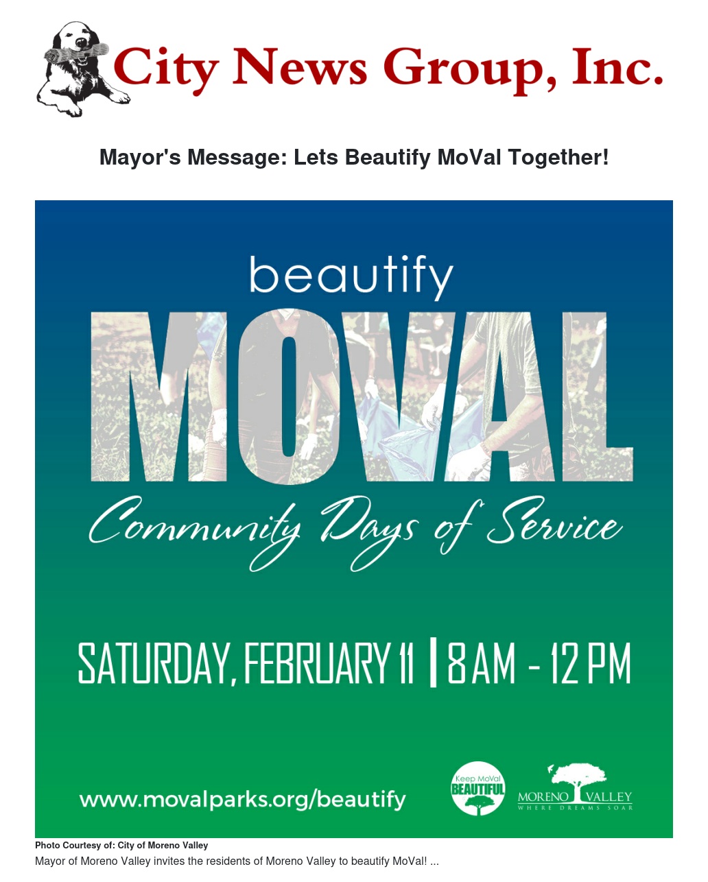 Mayor's Message: Lets Beautify MoVal Together! by Ulises Cabrera - City News Group, Inc.