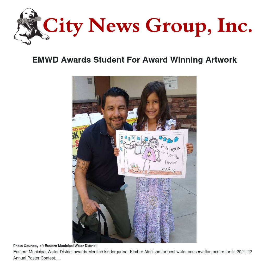 EMWD Awards Student For Award Winning Artwork by Eastern Municipal - City News Group, Inc.