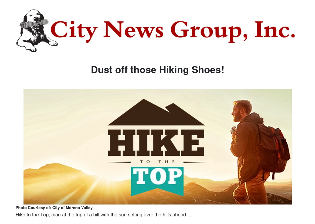 Join fellow outdoor enthusiasts for a hike to Hidden Springs on Saturday, January 25th, at 7:30 a.m. for Moreno Valley’s first “Hike to the Top” event of the year. Hikers will meet at Hidden Springs Park near the Hidden Springs Elementary School parking lot, located at 9675 Hidden Springs Drive.