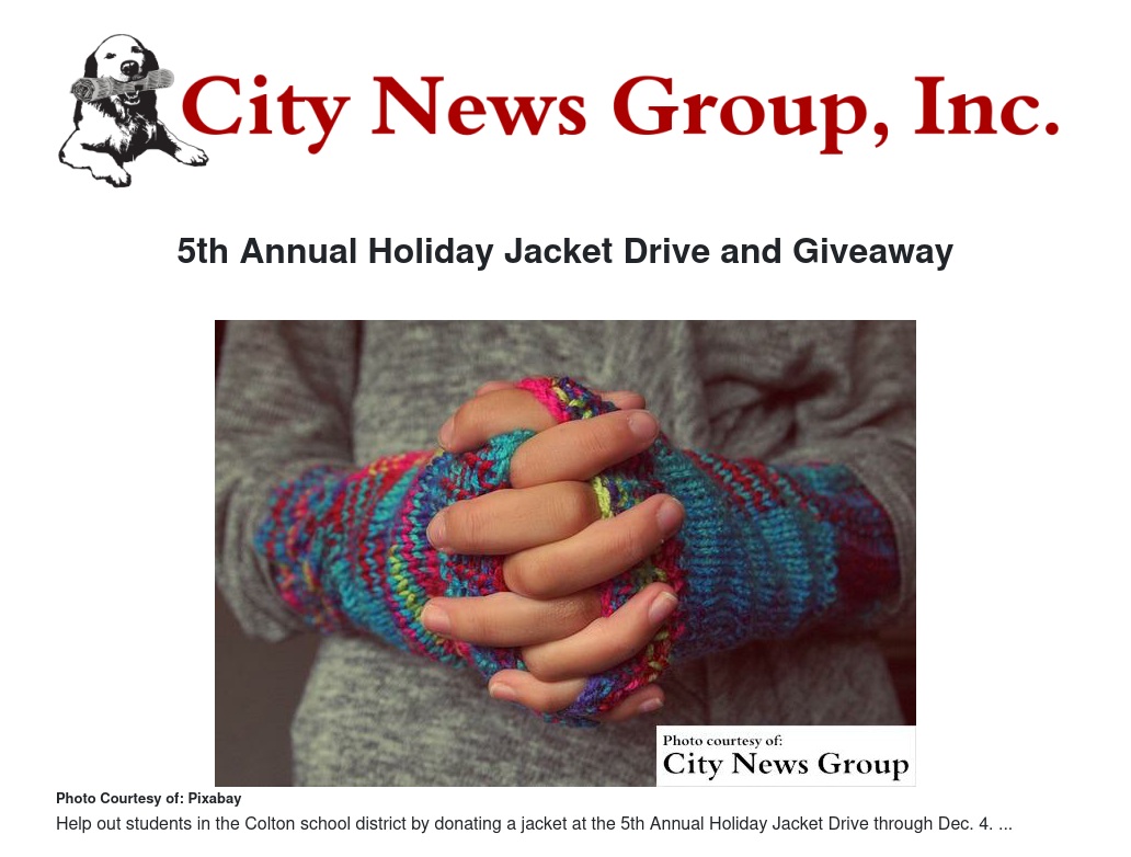 Colton Joint Unified School District's (CJUSD) 5th Annual Holiday Jacket Drive is underway.