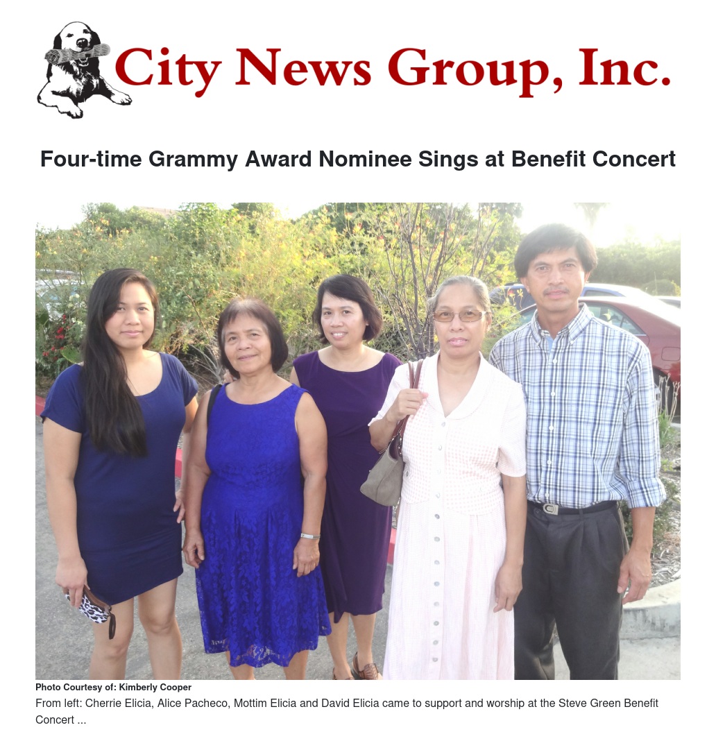 David Elicia explained, “My family and I love the music of Steve Green. I remember buying his CD 14 years ago while my children were little and playing it for them. The messages [he gives] have made an impact on all our lives and we all just want to give our part and support the benefit here.”