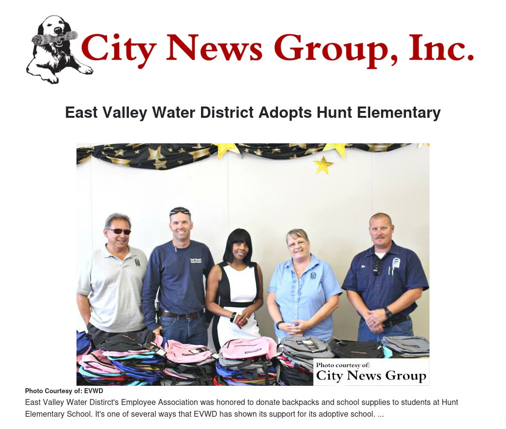 On Aug. 21, the East Valley Water District (EVWD) officially adopted Hunt Elementary School in San Bernardino.