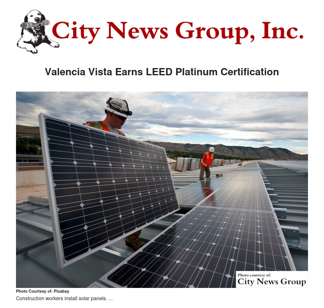 Valencia Vista Earns LEED Platinum Certification