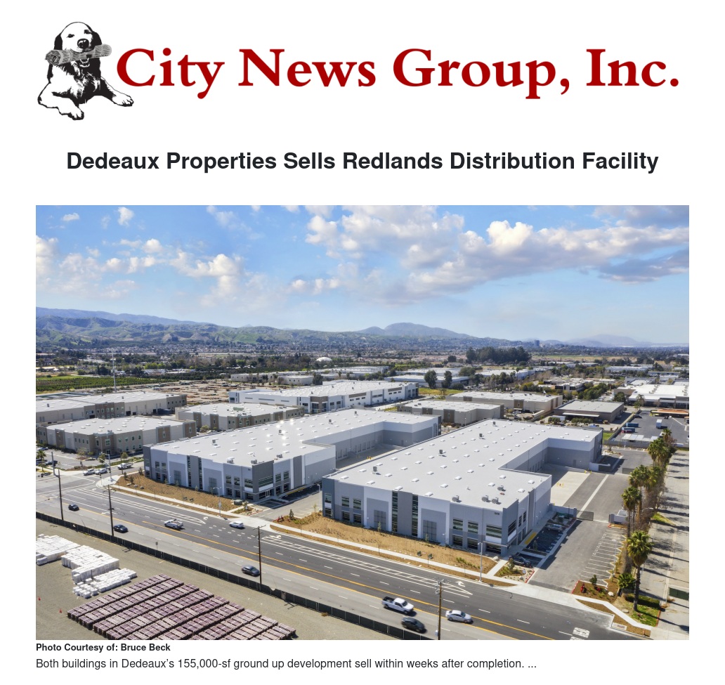 In September 2020, Dedeaux completed the execution of a similar business plan with the development and sale of a two-building 1.4 million-square-foot warehouse and distribution park in nearby Riverside, CA.