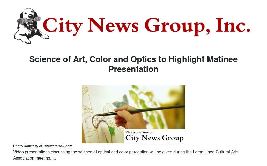 The June meeting of the Loma Linda Cultural Arts Association (LLCAA) will feature two astounding video presentations plus an interactive audience experiment designed to challenge culturally perceived notions of color, light and taste. The meeting will be held Sunday, June 28, from 2 to 4 p.m. in the Senior Center at the southeast corner of the Loma Linda Civic Center at 25541 Barton Road.