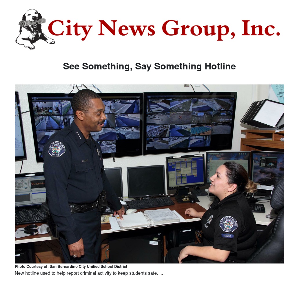 As the school year winds to a close, San Bernardino City Unified continues encouraging students, parents, and the public to use its new See Something, Say Something Hotline to report suspicious activity, especially during the summer months.