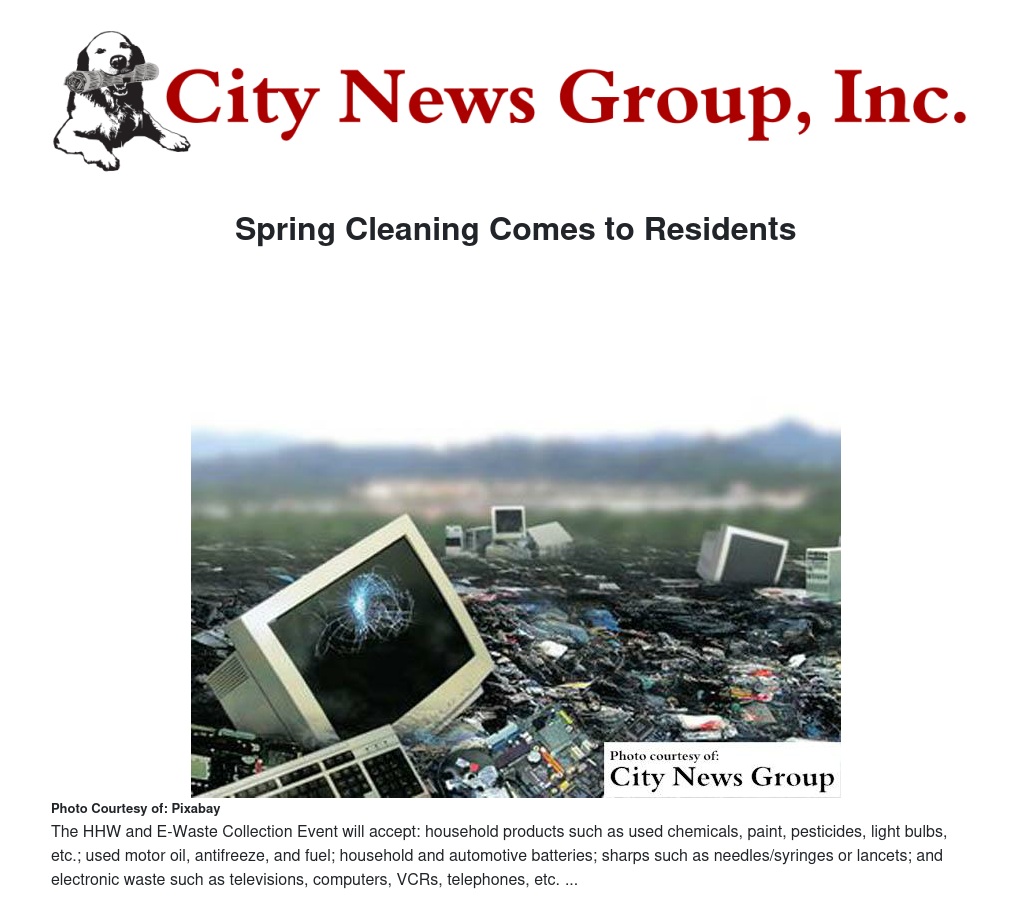 The City of Moreno Valley is providing residents with a free opportunity to dispose of hazardous materials during the Household Hazardous and Electronic Waste Collection Event on Saturday, April 15.