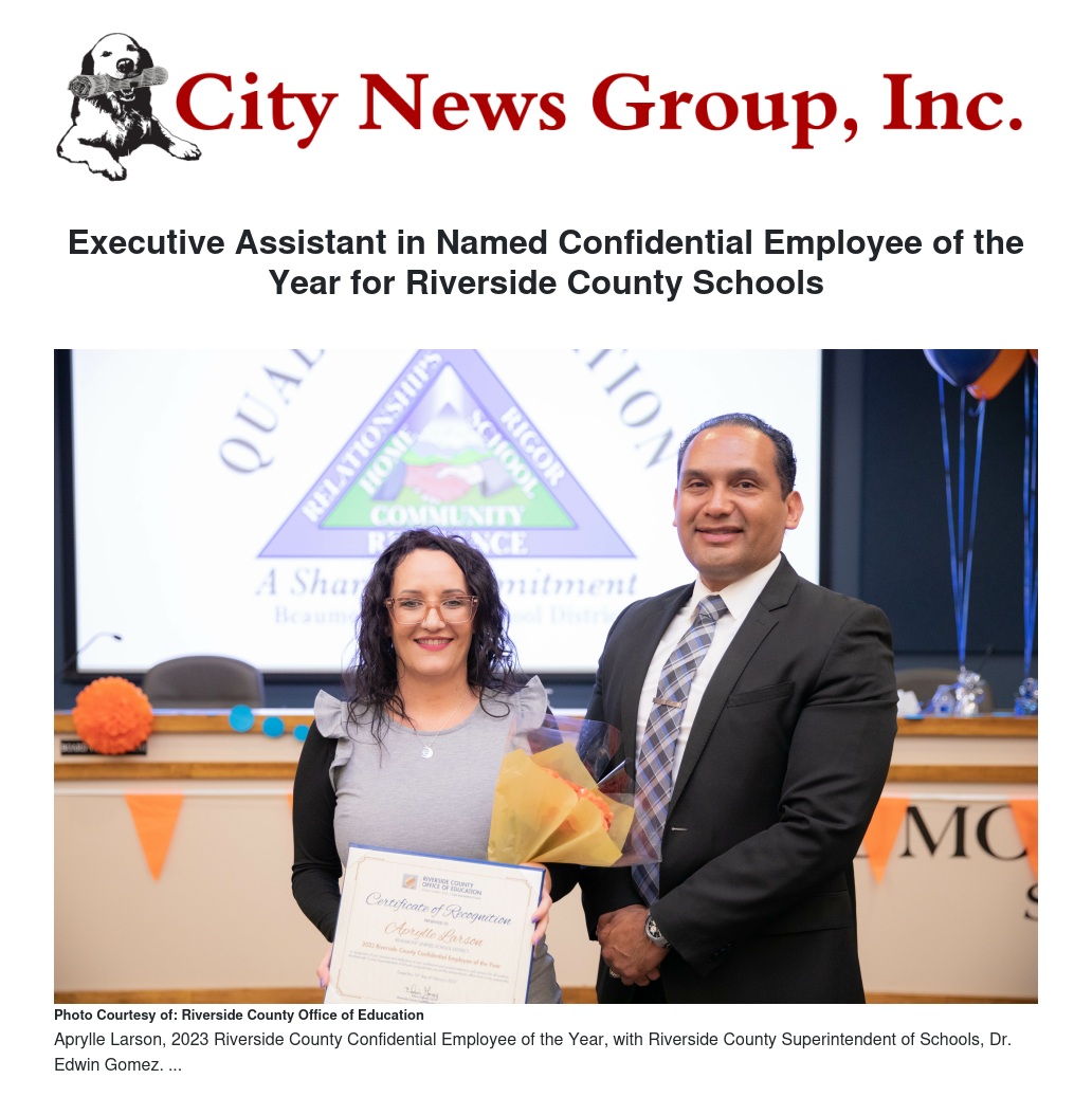 Executive Assistant in Named Confidential Employee of the Year for Riverside County Schools by Craig Petinak - City News Group, Inc.
