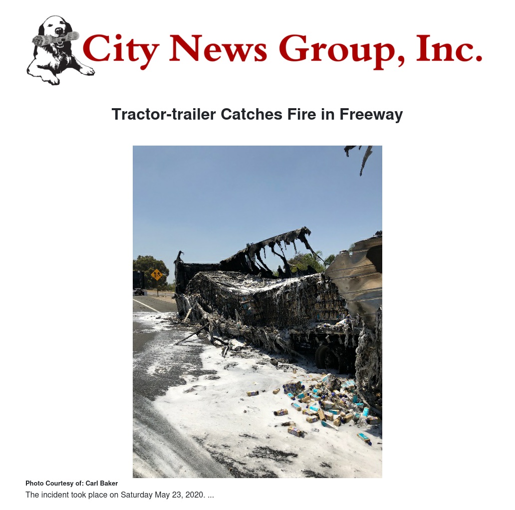 Tractor-trailer Catches Fire in Freeway by Carl Baker - City News Group, Inc.