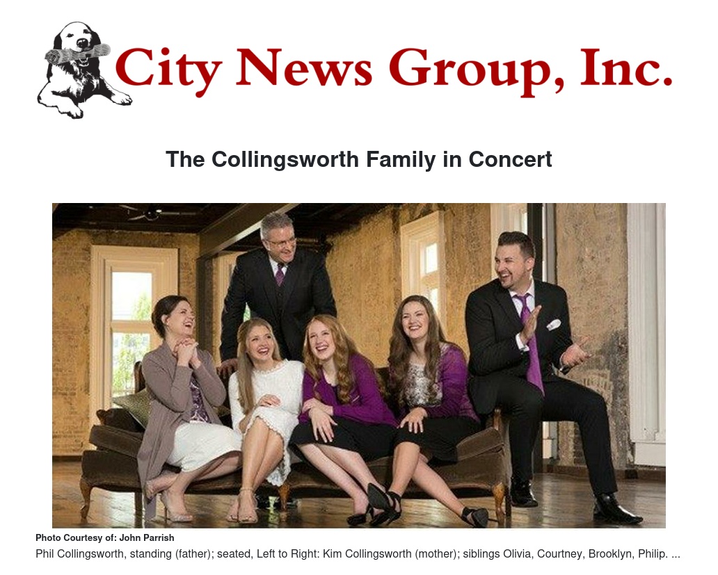 The Collingsworth Family, a nationally acclaimed gospel music ensemble, will be featured in a rare Inland Southern California concert on Wednesday, May 2. Their appearance, sponsored by Calimesa Community Concerts as part of its 32nd annual music series, will be at 7 p.m. that day in the Calimesa Seventh-day Adventist Church.