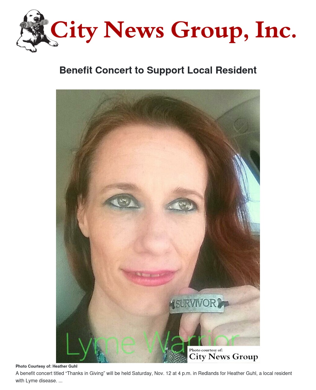 There is no cost for the concert but donations are welcomed. All proceeds will be used for medical treatments for Heather Guhl, who suffers from chronic Lyme disease.