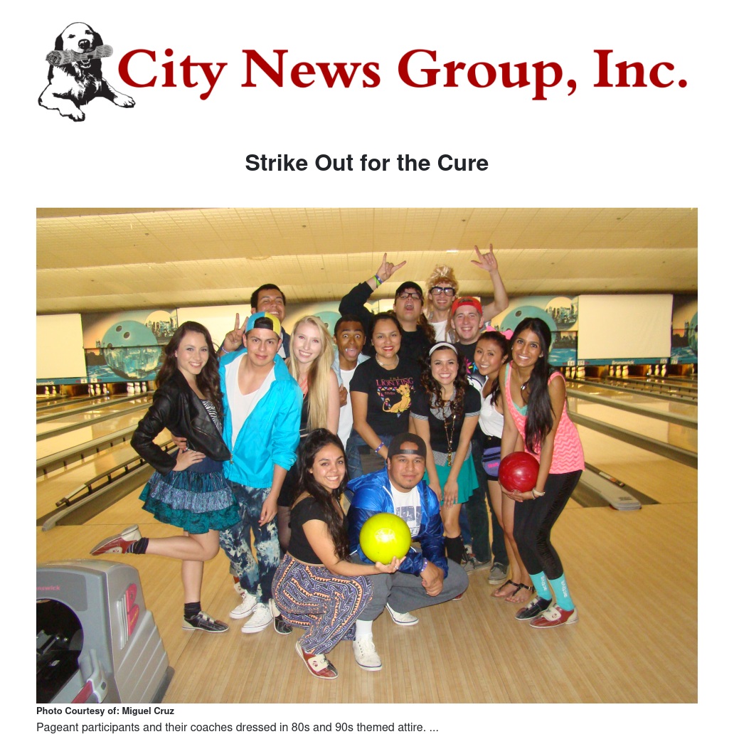 Sergio Marquez of Delta Tau Delta organized the 80's and 90's themed event, a night of cosmic bowling at Universal Strike, a bowling alley in Moreno Valley. Strike Out for the Cure, one of the largest philanthropy conducted by students of UCR, is part of a series of events and fundraisers organized by Delta Tau Delta leading up to Delta Queen, which takes place in the Spring each year.