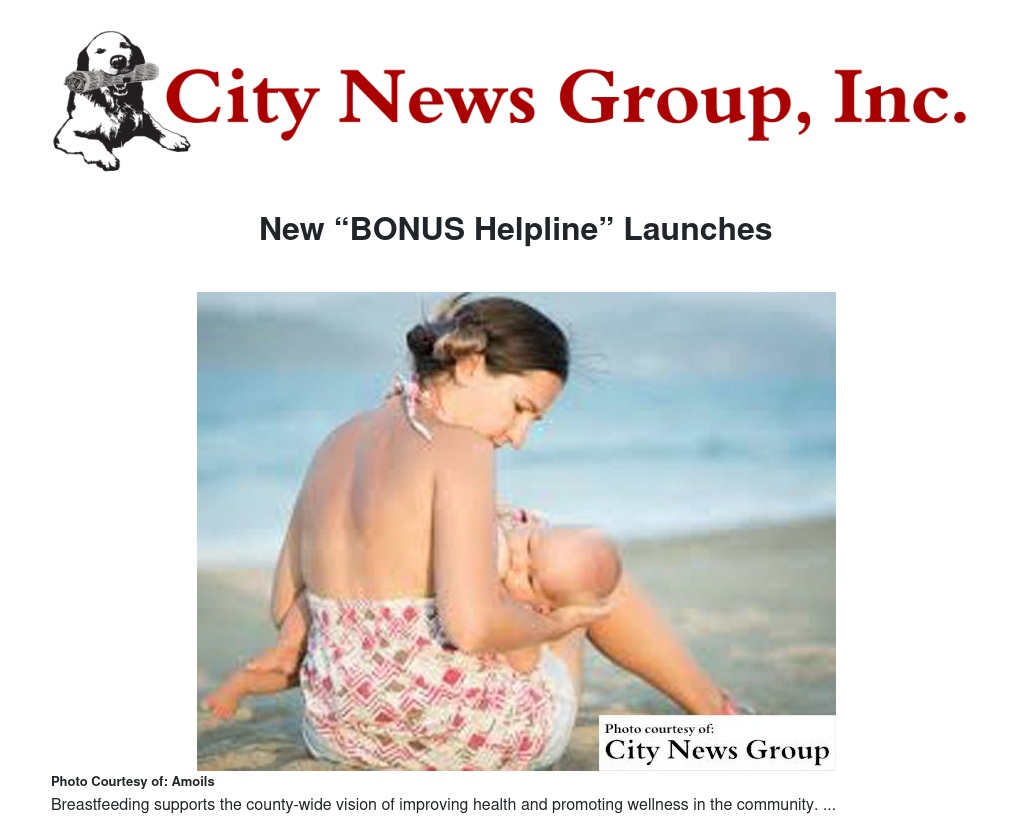 The BONUS Program and the breastfeeding support BONUS helpline aim to remove obstacles that mothers might encounter when they attempt to breastfeed, which supports the county-wide vision of improving health and promoting wellness in the community.