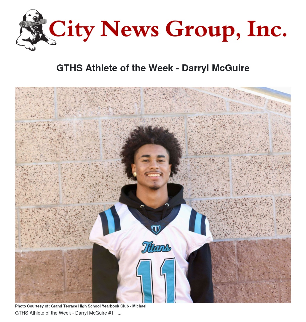 GTHS Athlete of the Week - Darryl McGuire by Titan Mom Elvira - City News Group, Inc.