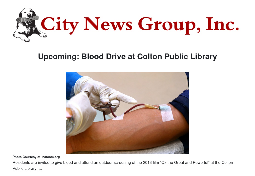 Upcoming: Blood Drive at Colton Public Library