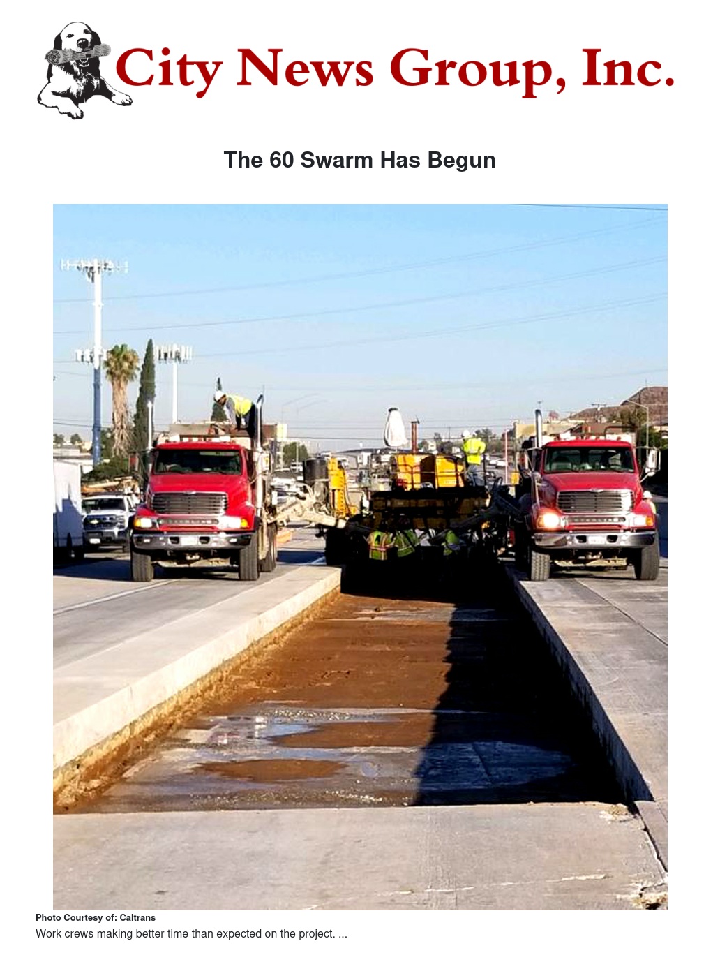 The chaos has begun. The SR-60 Pavement Rehabilitation Project is underway and will continue through Fall of 2021. The 60 freeway shut down at about 10 p.m. last Friday night and remained closed until late Sunday night. The closure was to occur until early Monday morning, however thanks to the hard work of the crews they were able to finish early. Caltrans sent out a tweet stating, “Great news Inland Empire motorists. The 60 Swarm is over early this weekend. All lanes on EB 60 are now open. Thank you for your cooperation.”
