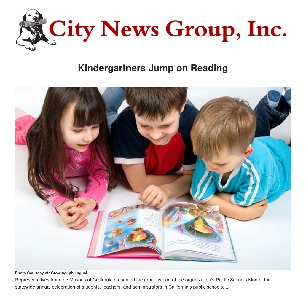 Representatives from the Masons of California presented the grant as part of the organization’s Public Schools Month, the statewide annual celebration of students, teachers, and administrators in California’s public schools. The grant will help create the school’s Raising a Reader program, aimed at providing kindergartners with high-quality books, as well as tools families can use at home to encourage reading and language development.