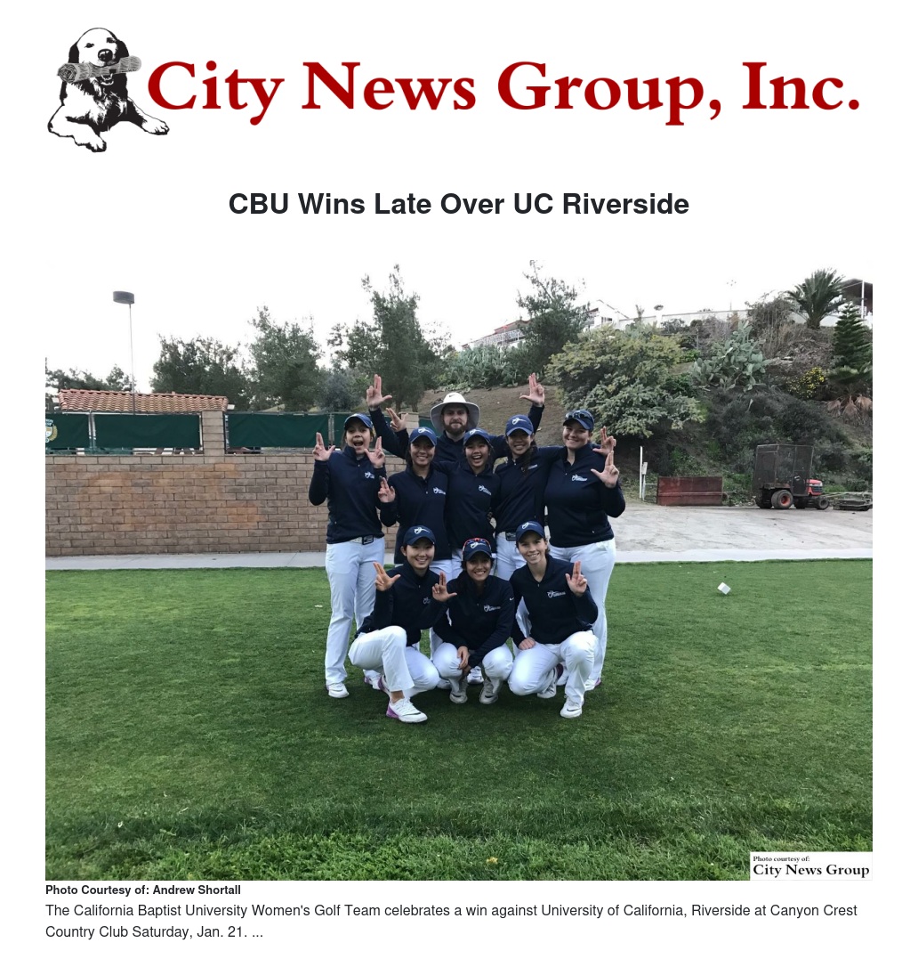 The Lancers overcame the deficit on the back nine by winning five of the eight singles matchups. Martirez, Scrivner, Nguyen and Martin all won by two strokes, while Erica Wang won by one stroke to secure the top-team finish for CBU.