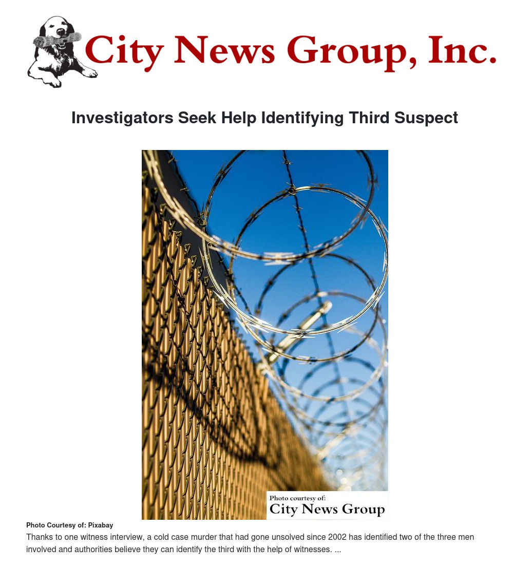 SAN BERNARDINO >> On August 23, 2002, at approximately 7:09 p.m., Patrick Bailey was shot and killed on the 14600 block of Hunter Street in Fontana. The San Bernardino County Sheriff’s Department, Homicide Detail conducted the investigation. In 2003, after an exhaustive investigation, the case remained unsolved.