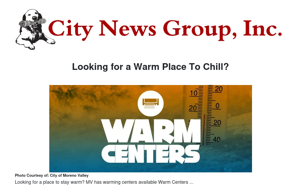 As temperatures cool, the City of Moreno Valley is offering warm centers for residents to get out of the cold.