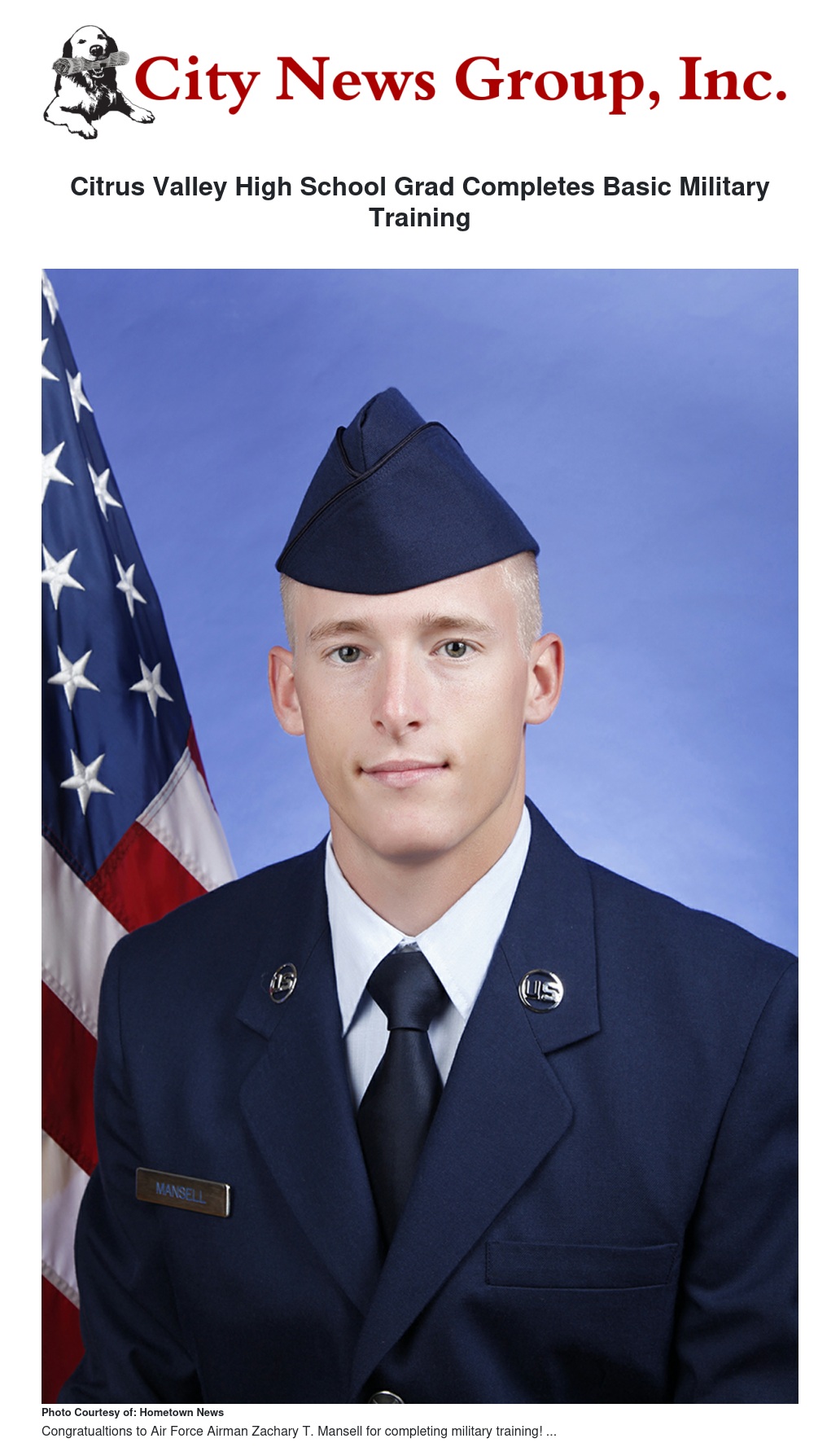 Air Force Airman Zachary T. Mansell graduated from basic military training at Joint Base San Antonio-Lackland, San Antonio, Texas.