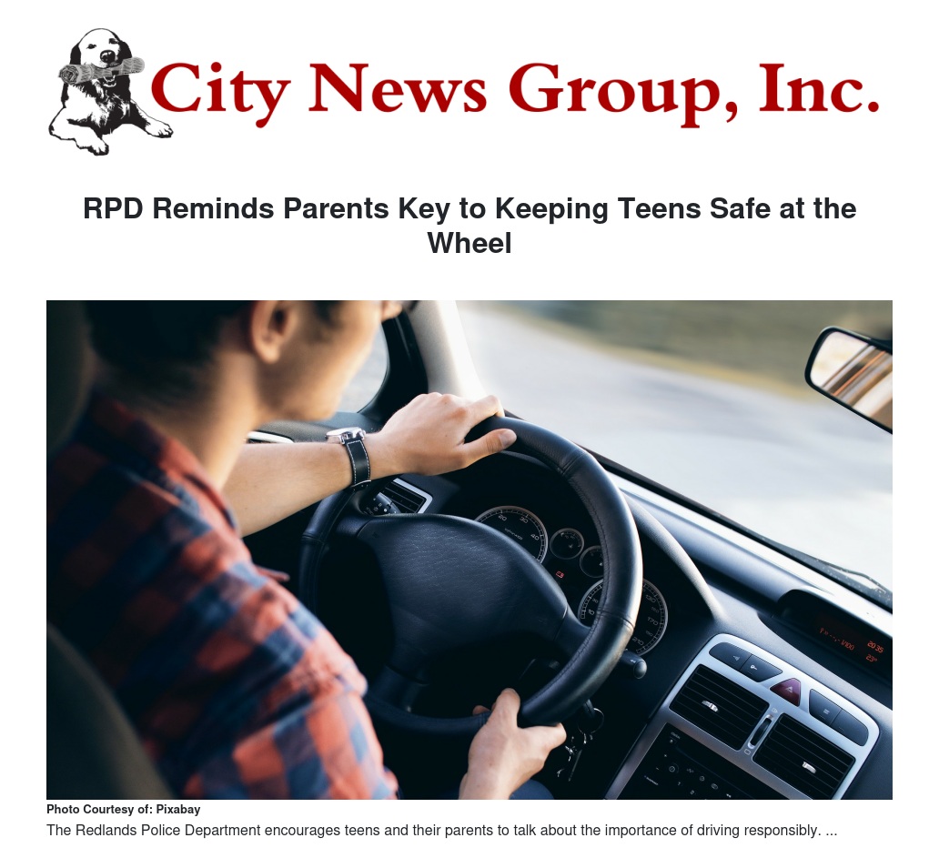 “Parents play a critical role in teen driver safety and in communicating important driving safety information,” Redlands Police Sgt. Jeremy Floyd said. “Teen drivers are still gaining experience behind the wheel and are more likely to take risks and pick up bad habits. This is why it’s important for parents and caregivers to play an active role in talking to their teens about risky driving behaviors that can lead to deadly and tragic consequences.”