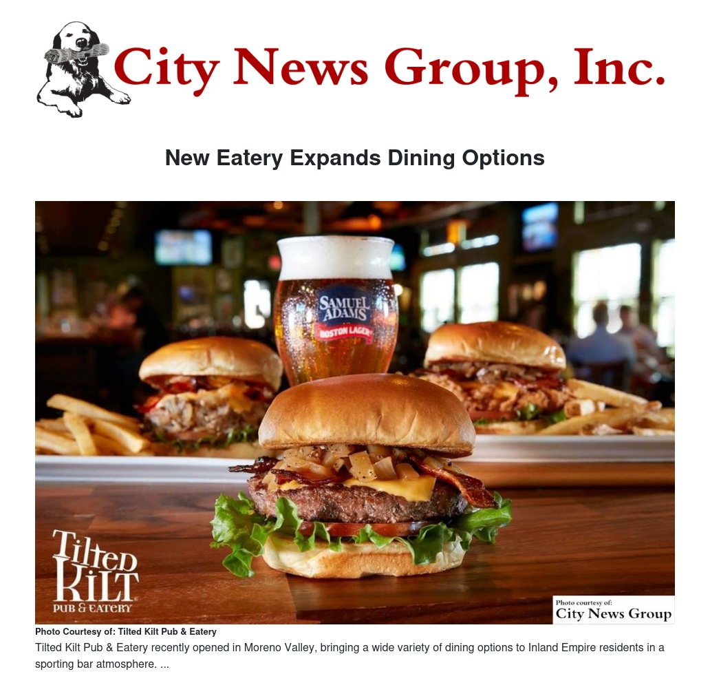 MORENO VALLEY >> The City of Moreno Valley congratulates the Tilted Kilt Pub & Eatery on their grand opening in the TownGate Promenade shopping center, located at the southeast corner of Campus Parkway and Day Street in Moreno Valley.