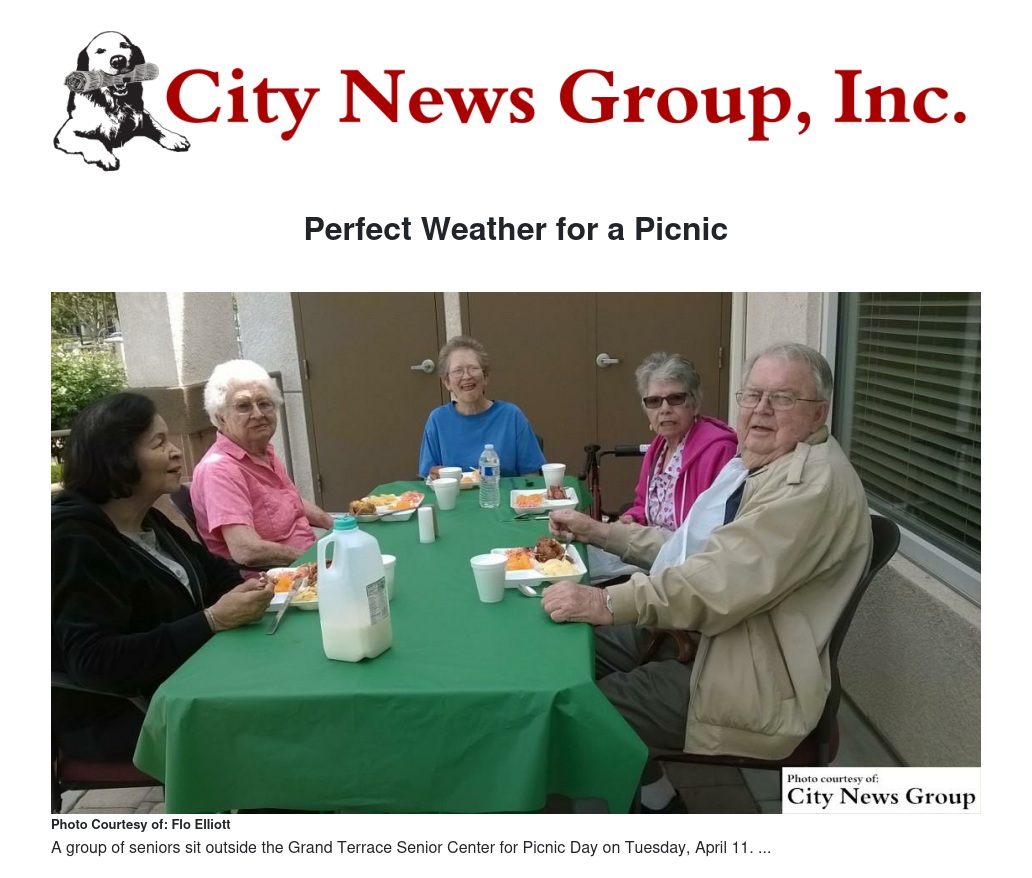 Elliott said the next picnic is expected to be in May. For more information about the activities at the Grand Terrace Senior Center, call (909) 824-1491.