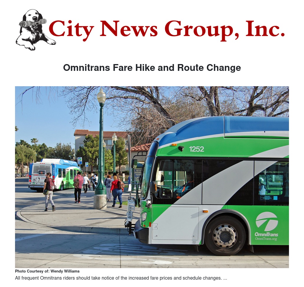 Omnitrans Fare Hike and Route Change by Wendy Williams - City News Group, Inc.
