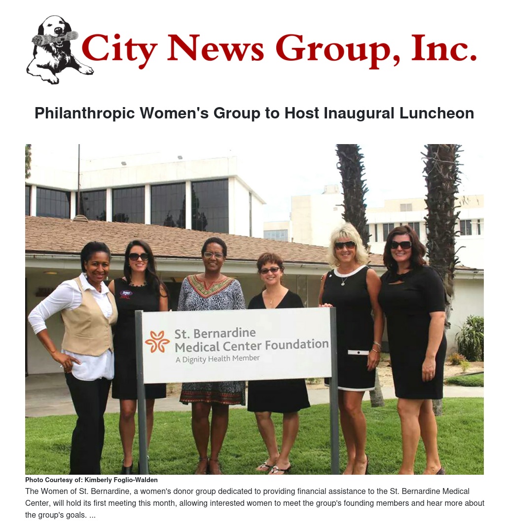 The lunch will feature a presentation by San Bernardino County Supervisor Josie Gonzales, District 5. Women who attend will meet the group's founding members and learn about the impact the group hopes to have on St. Bernardine Medical Center and the surrounding community.