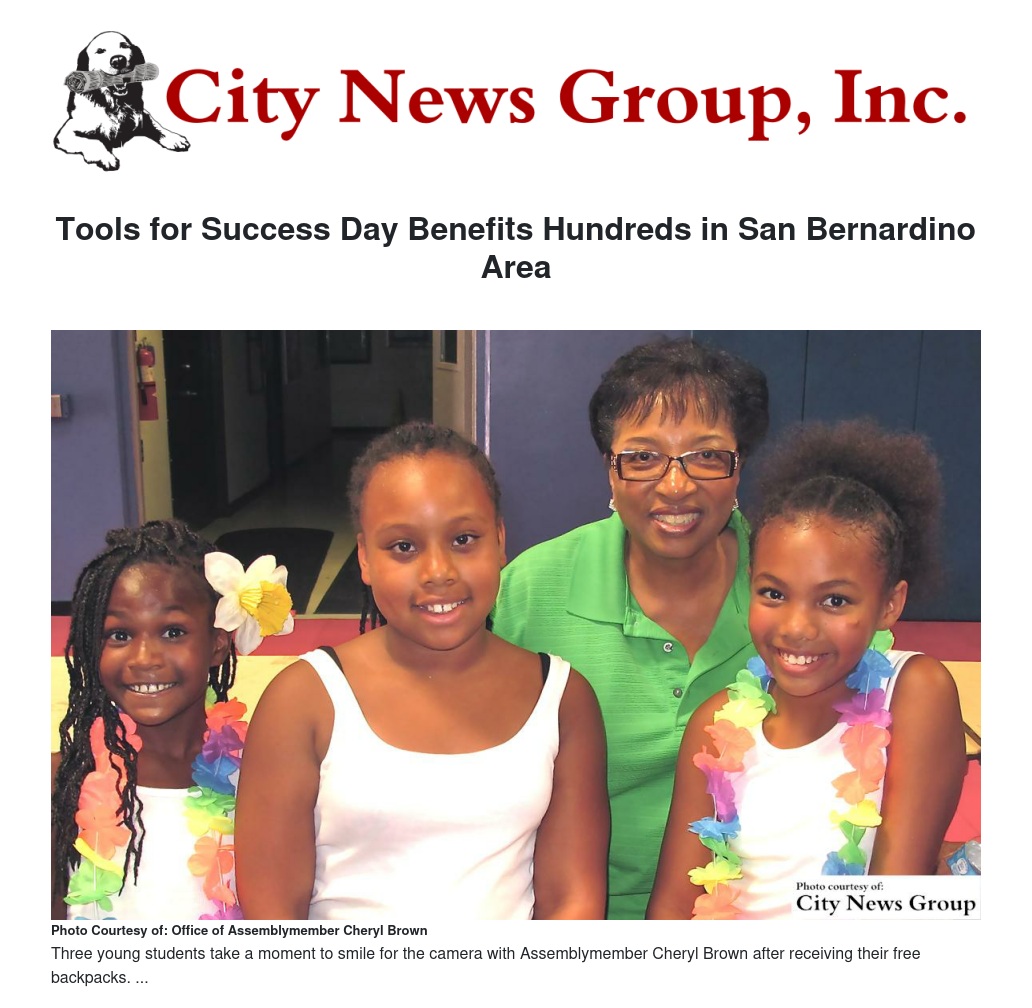 "This was a wonderful opportunity to help low-income children with much-needed back to school supplies. Community Action Partnership of San Bernardino County (CAPSBC) is proud of the tradition of supporting kids to do their best in school. We are grateful to Kaiser Permanente Fontana and Ontario Medical Center staff for donating to CAPSBC school supplies and 31 back packs valued at $2,700. Together with another 100 backpacks and supplies from our Food Bank, CAPSBC was able to help the kids who showed up seeking support at Assemblymember Brown's Tools for Success event," stated Patricia L. Nickols-Butler, CEO of CAPSBC.