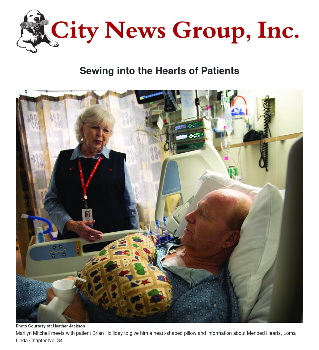In February 2004, Mitchell attended a special program for patients where she met a nurse who told her about the Mended Hearts support group program. Mended Hearts provides hand-made heart shaped pillows and hosts monthly support group meetings to provide education and resources for heart patients and family members who have undergone heart surgery at Loma Linda University Medical Center. The heart pillows are more than a beautiful gift, they help patients deal with pain by placing pressure on their chest when they cough or sneeze. After surgery, a patient’s chest is sore from their rib cage being opened up for a heart operation.