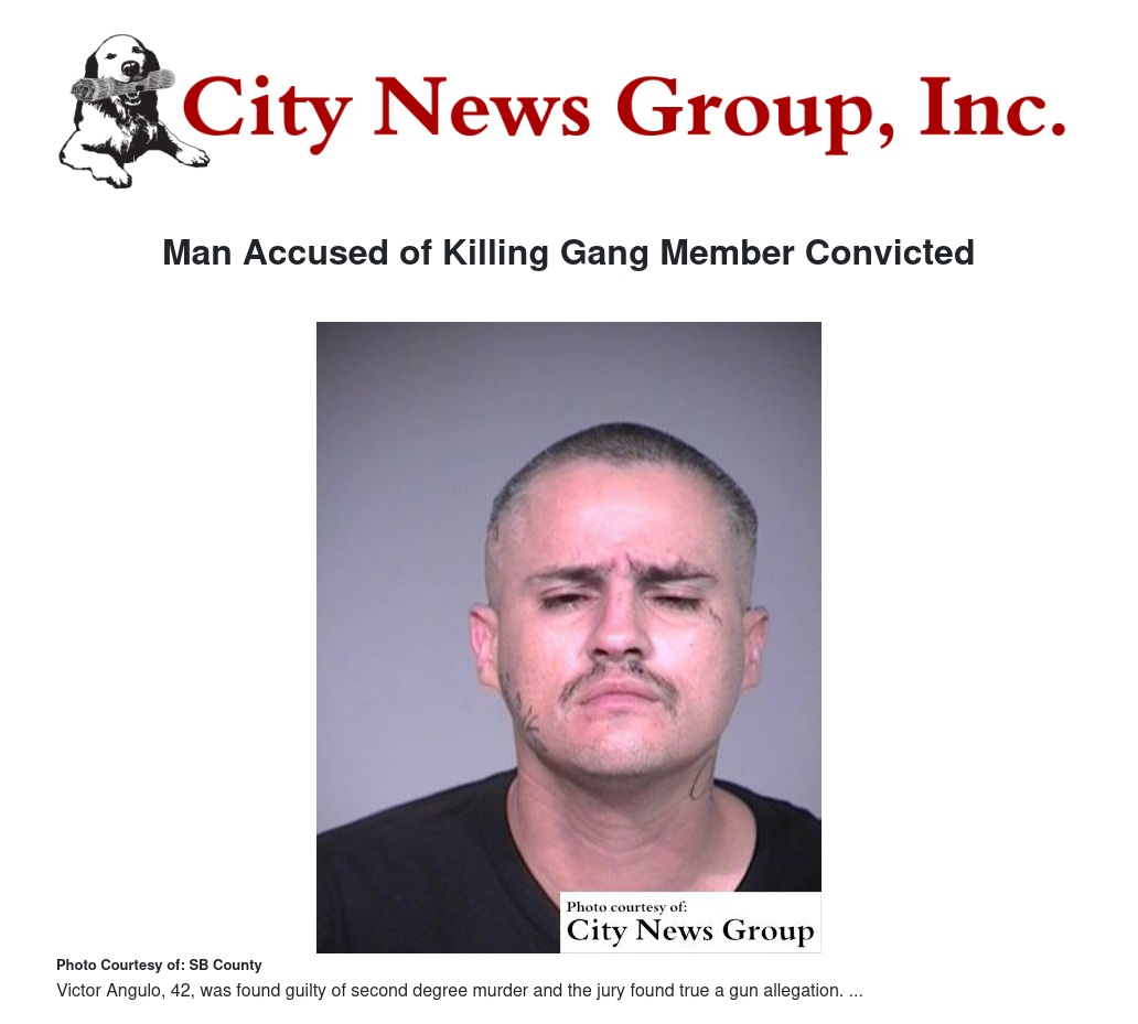 Victor Angulo, 42, was found guilty of second degree murder and the jury found true a gun allegation.